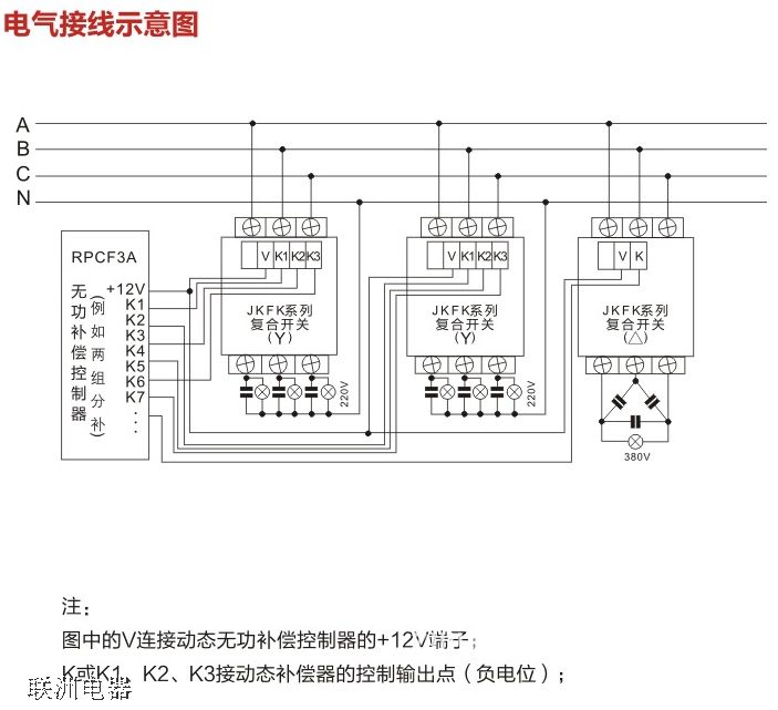 JKFK系列是新一代智能型電容投切開關(以下簡稱復合開關),有共補型和分補型兩種。共補型用于投切三相電容器,采用△接法;分補型用于投切單相電容器,采用Y接法。