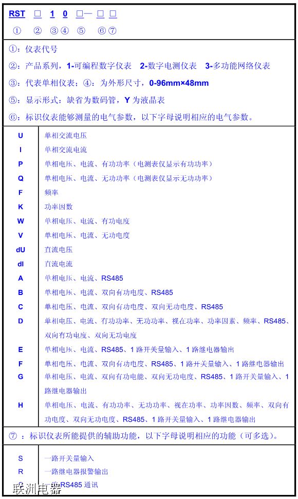 RST210系列產品提供電壓、電流、有功功率、無功功率、功率因數、有功電度、無功電度、頻率的測量,具有較強的擴展輔助功能,如監視開關狀態的一路開關量輸入或控制開關動作的一路繼電器輸出,以及通過 RS485/MODBUS 通訊,對儀表進行組網管理。同時用戶可通過對繼電器進行參數設定或遙控,實現報警輸出及遠程控制功能。