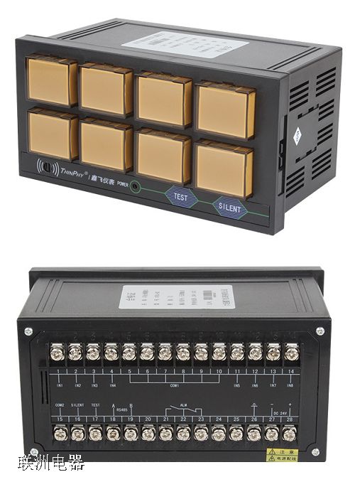 智能閃光報警儀為盤式拼裝結構,光子牌顯示,與外接電鈴(或音響器),電源及控制按鈕組成閃光報警儀系統。該儀表與輸入信號為電接點式,在工業自動化控制系統中與各種接點式控制檢測儀表配套使用監視各種設備運行狀態,實現越限報警。