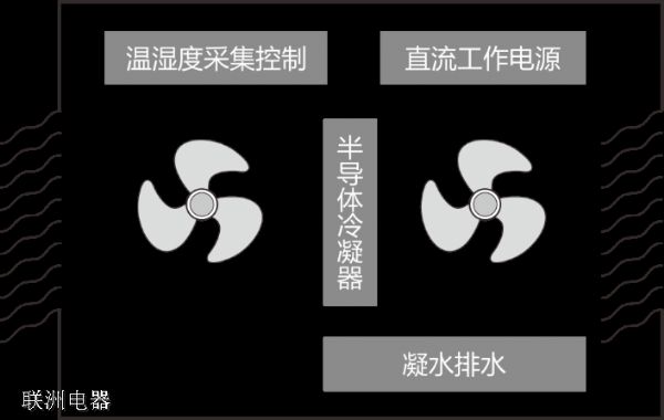 半導體冷凝器組件:除濕裝置的核心主件,工作后產生冷熱效應。熱端在風扇作用下加速設備內部空氣流動,冷端將流動濕度室氣快速冷凝形成水滴,達到徹底除濕目的。