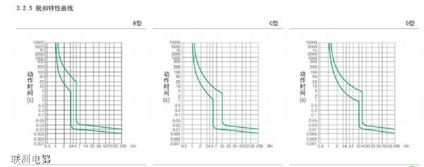 涉及到斷路器的短路電流。要講斷路器短路電流,就離不開斷路器產品的脫扣特性了。每個斷路器都有自己的脫扣特性曲線,對于照明選用的16A的C型斷路器,它的脫扣特性曲線如下圖中間位置所示: