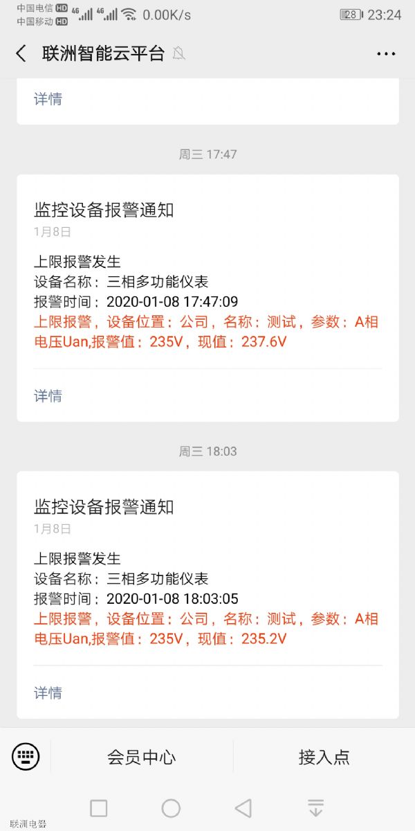 除了電腦上,手機上也可以看到,還支持微信報警,比如電流高了就發微信告訴你。