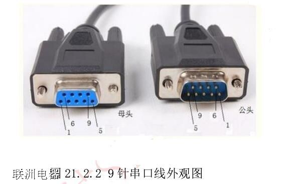 RS-232C 還有一種 9 針的非標(biāo)準(zhǔn)連接器接口,簡(jiǎn)稱 DB9。串口通信使用的大多都是 DB9 接口。DB25和DB9 接頭有公頭和母頭之分,其中帶針狀的接頭是公頭,而帶孔狀的接頭是母頭。9 針串口線的外觀圖如圖 21.2.2 所示: