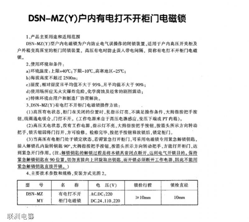 戶(hù)內(nèi)電磁鎖 DSN-BMY/BMZ的說(shuō)明書(shū)