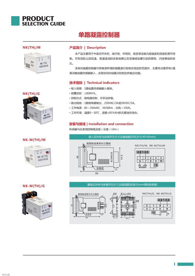 ABS-1400 溫濕度控制器可同時檢測1路凝露和1路溫度信號。