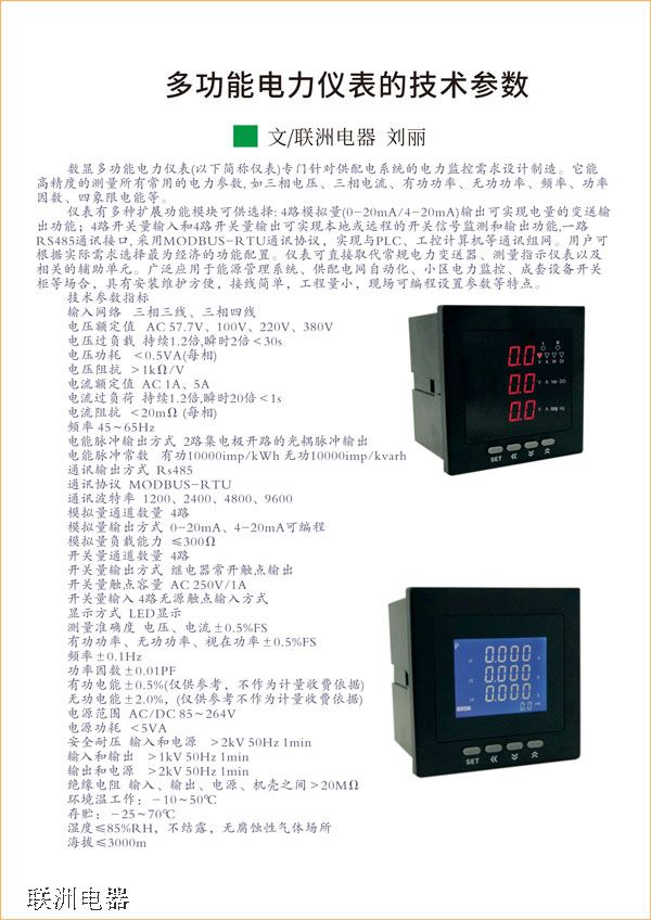 測量:三相電壓、電流、有功功率、無功功率、功率因數、率、有功電能、無功電能尖、峰、平、谷四種裁率計量具備測測量2-31次諧波分析采用高可靠性工業級DSP,數據采集速度快,測量精度高,運算處理速度強大的數據采和處理功能,可實現一個回路全電氣的測量・體積小,安裝方便,采用自鎖面板式安裝機構,無需螺絲固定即可安裝,・接線方便靈活,三相三線制、三相四線制可通過面板編程設置可選配1路RS485通訊口( Modbus通信協議),與其他設備進行聯網通信可選配1~4路4~20mA的模擬量輸出和1~4路開關量輸入輸出