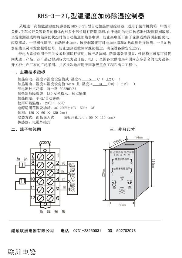 KHS-3-2T2型自動加熱除濕控制器的說明書