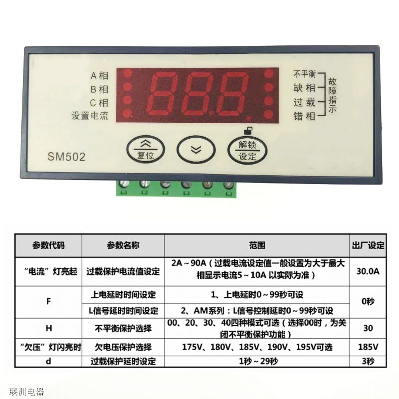 SM502/501數(shù)顯電流過載相序保護(hù)的說明書