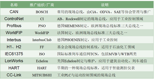 圖 3 目前主流的現場總線