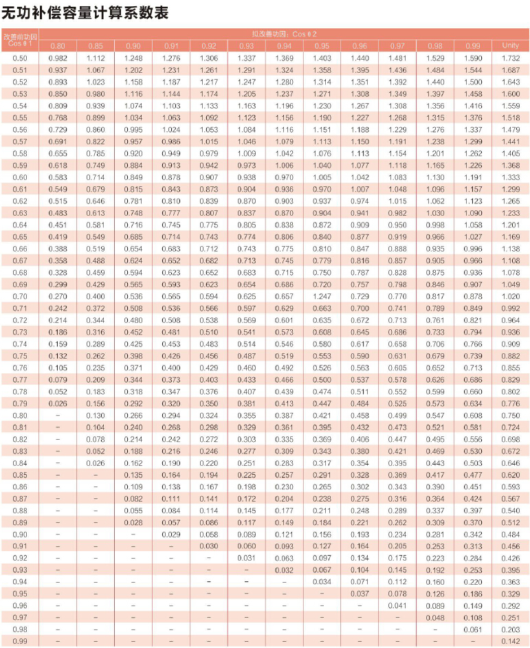 無功補(bǔ)償裝置的補(bǔ)償容量是如何計算?無功補(bǔ)償容量計算系數(shù)表