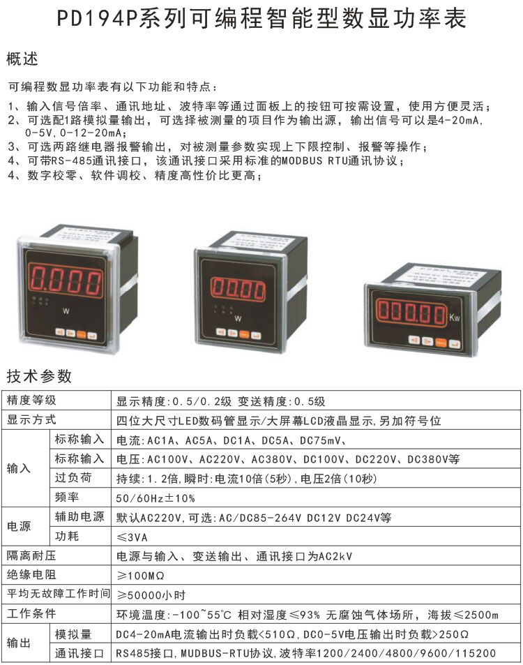 PD194P-9X1、PD194P-5X1三相有功功率表 單相有功功率表