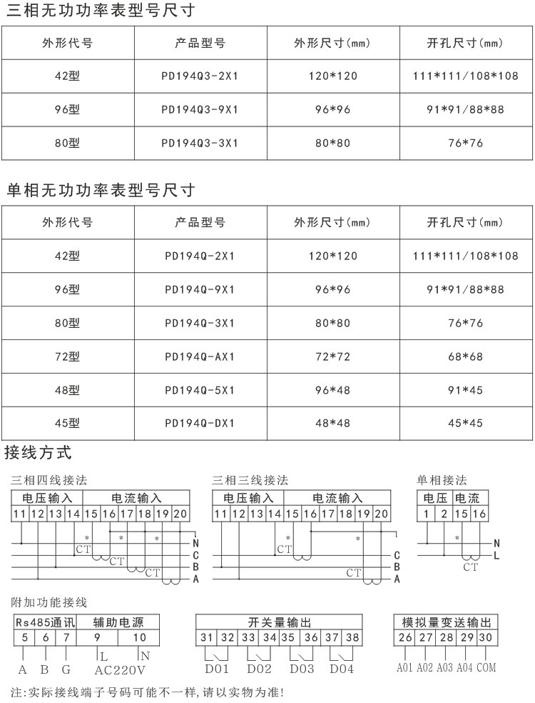 PD194Q-9X1、PD194Q-5X1三相無功功率表 單相無功功率表